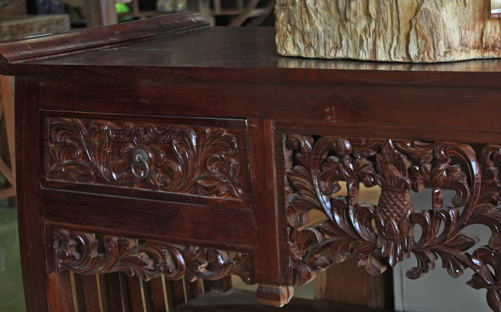 Esta realizada y tallada a mano en la magnífica madera de teca, para que dure toda una vida, con su dureza y resistencia.