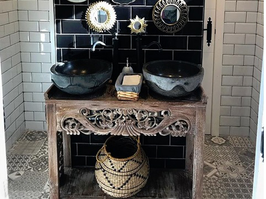 Un detalle muy bonito también es el lavabo de madera fosilizada, los cuales ya no encontrarás mucho pero nosotros los tenemos, es un auténtica joya, realizada y tallada a mano, y pulida por dentro, hará que tu baño sea único, original, y exótico.