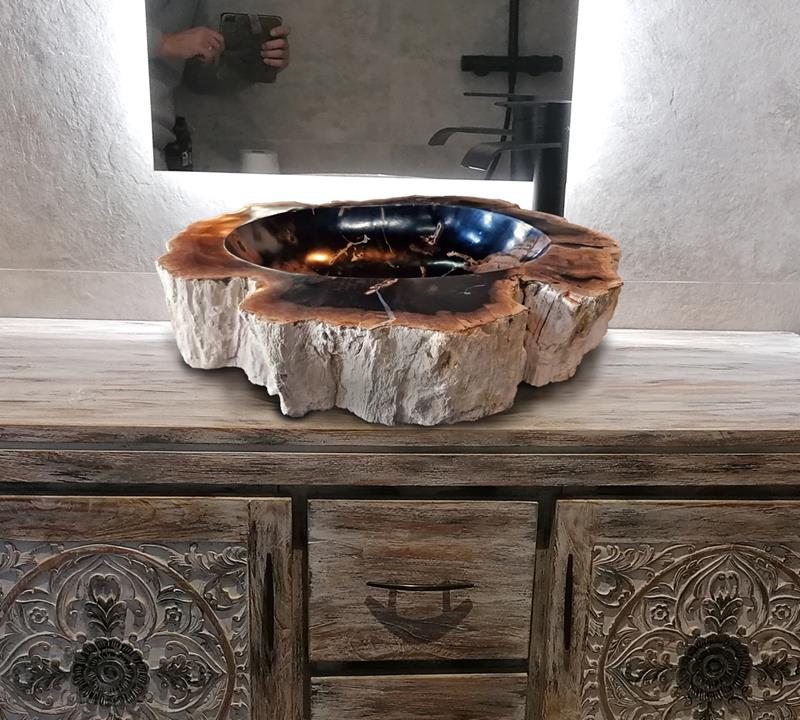 Nuestro lavabo de madera fosilizada, no sólo es un testimonio de la prehistoría, sino que además, es un elemento decorativo impresionante, que añadirá un toque de elegancia y belleza natural a tu baño. Cada veta y textura cuentan una historía antigua, y es una reminiscencia de los bosques prehistoricos que cubrieron la tierra hace millones de años.