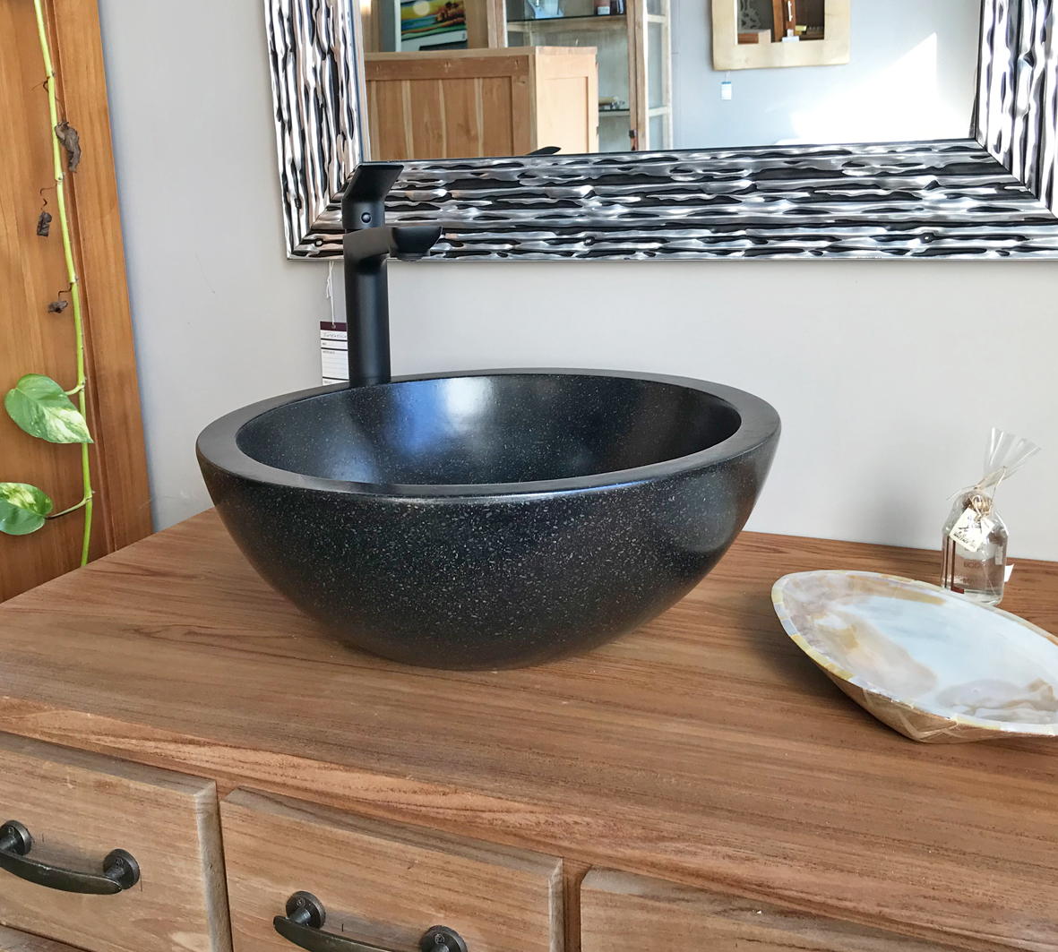 Lavabo niza piedra terrazo negro Existe la posibilidad de realizar este lavabo en las medidas y acabado que desee.