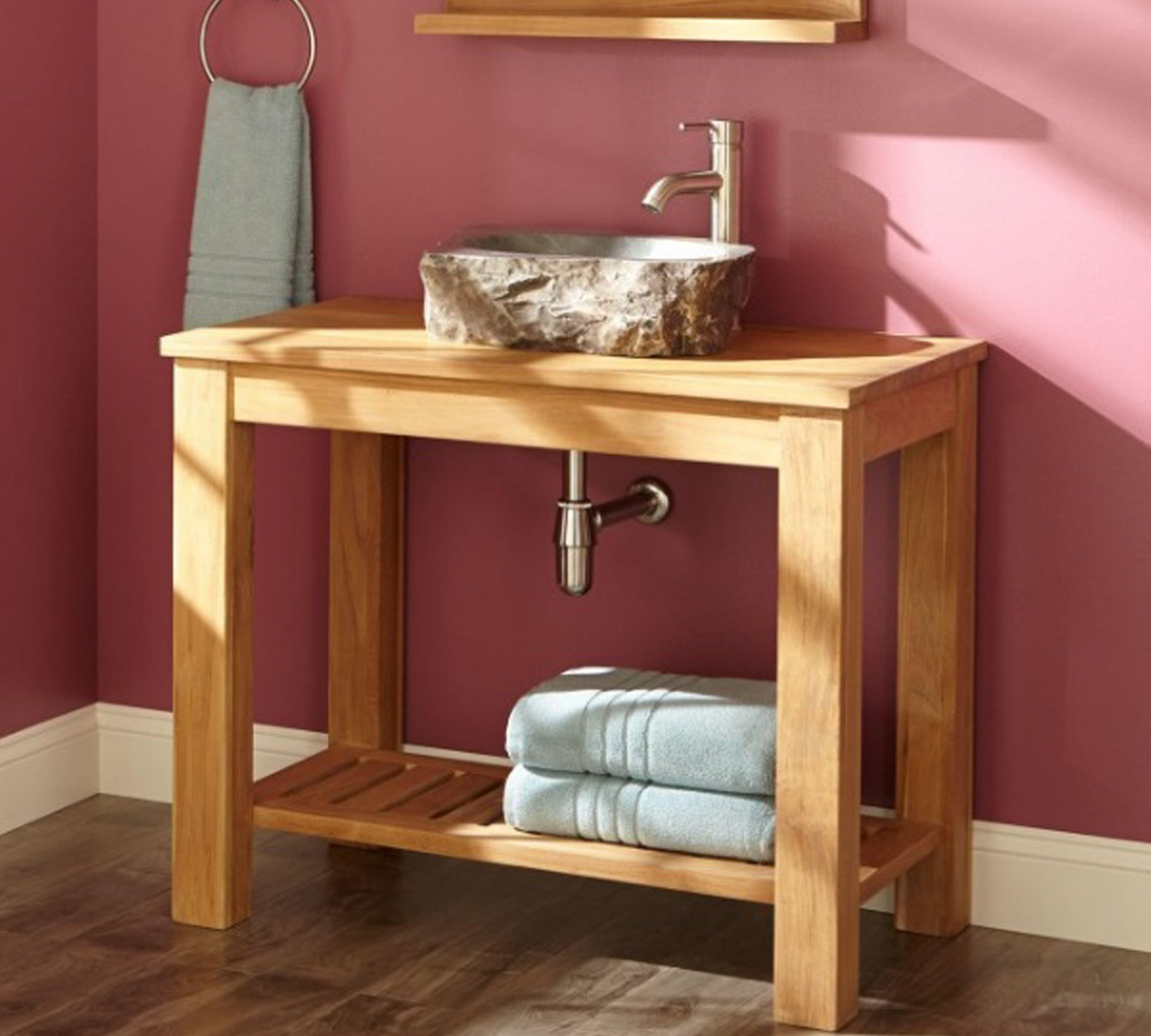 mueble, baño, madera, teca