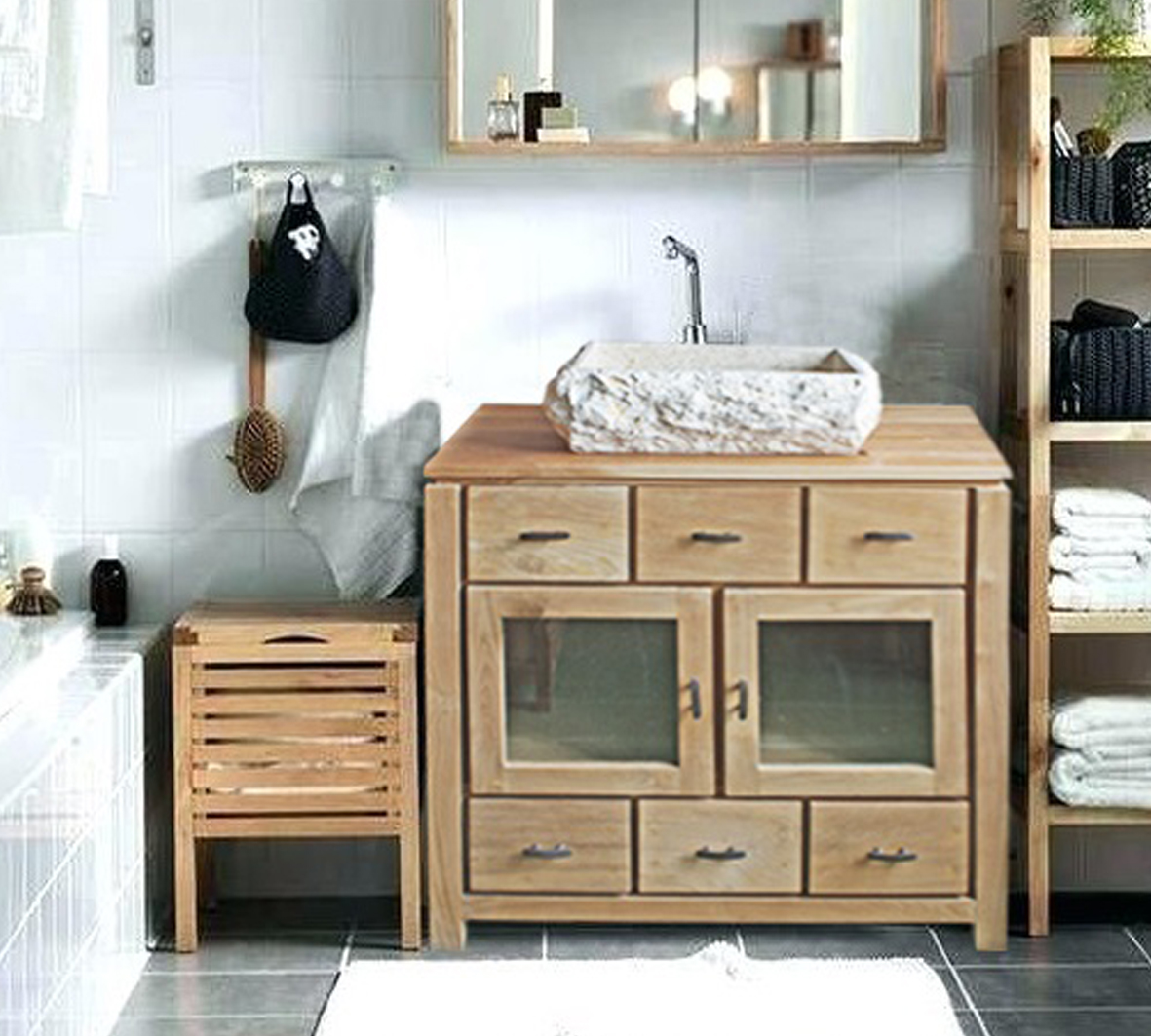 mueble, baño, madera, maciza, teca