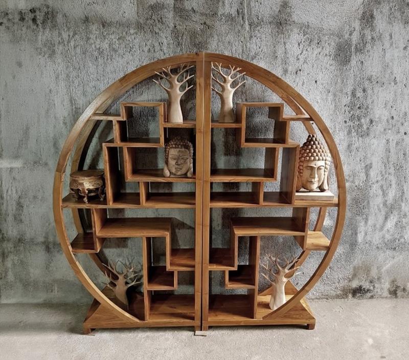 estanteria exótico, estanteria madera teca, estanteria diseño único, estanteria realizada a mano, estanteria asiatica, estanteria unica.
